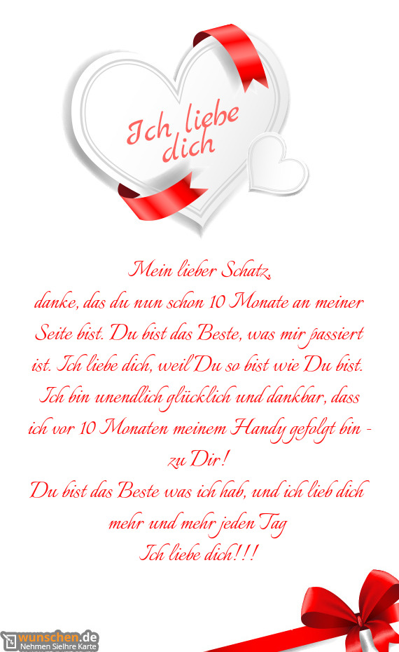 Danke, das du nun schon 10 Monate an meiner Seite bist. Du bist das Beste, was mir passiert ist. Ich